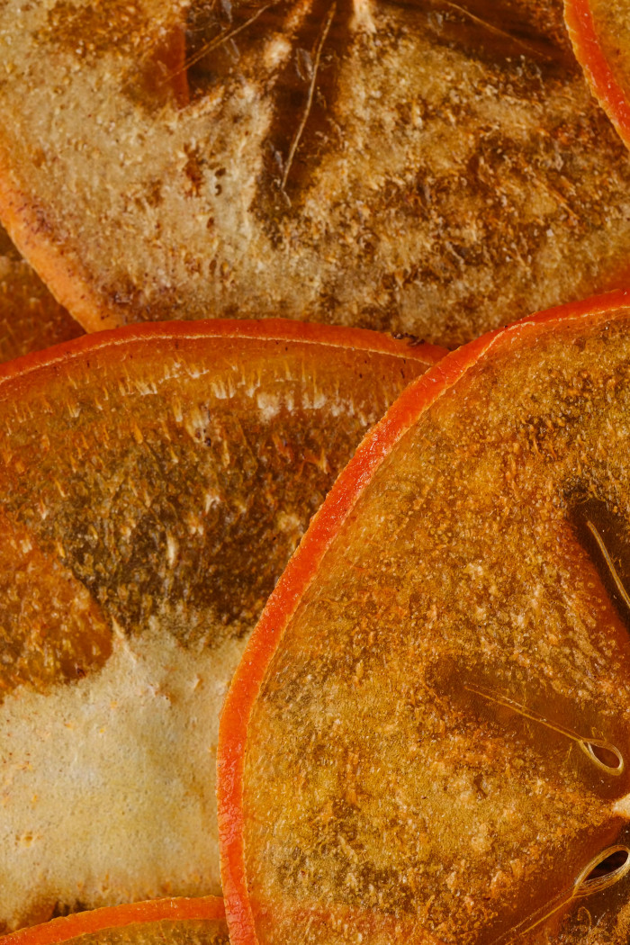 Ідеальний партнер для витриманих спиртних напоїв. Солодкий, медово-пряний профіль цих чипсів з хурми створений, щоб доповнювати віскі, бренді та темний ром. Ми досягаємо такої глибини смаку шляхом повільної дегідрації добірних, нетерпких плодів, перетворюючи їх на красиві бурштинові слайси.