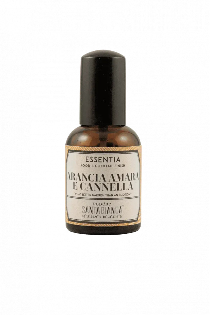 Essentia | Arancia Amara E Cannella — це натуральний ароматизатор для харчових продуктів у вигляді спрею, що поєднує ефірні олії з шкірки сицилійського гіркого апельсину та кориці зі Шрі-Ланки. Цей продукт створений для швидкого й легкого додавання аромату та смаку до ваших страв та напоїв.