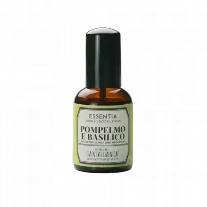Essentia | Pompelmo E Basilico — це натуральний ароматизатор для їжі у вигляді спрею, виготовлений із чистої ефірної олії грейпфрута (Citrus Paradisi). Ефірну олію отримують шляхом холодного віджиму шкірки плодів грейпфрута, що забезпечує свіжий, цитрусовий та злегка кислуватий аромат.