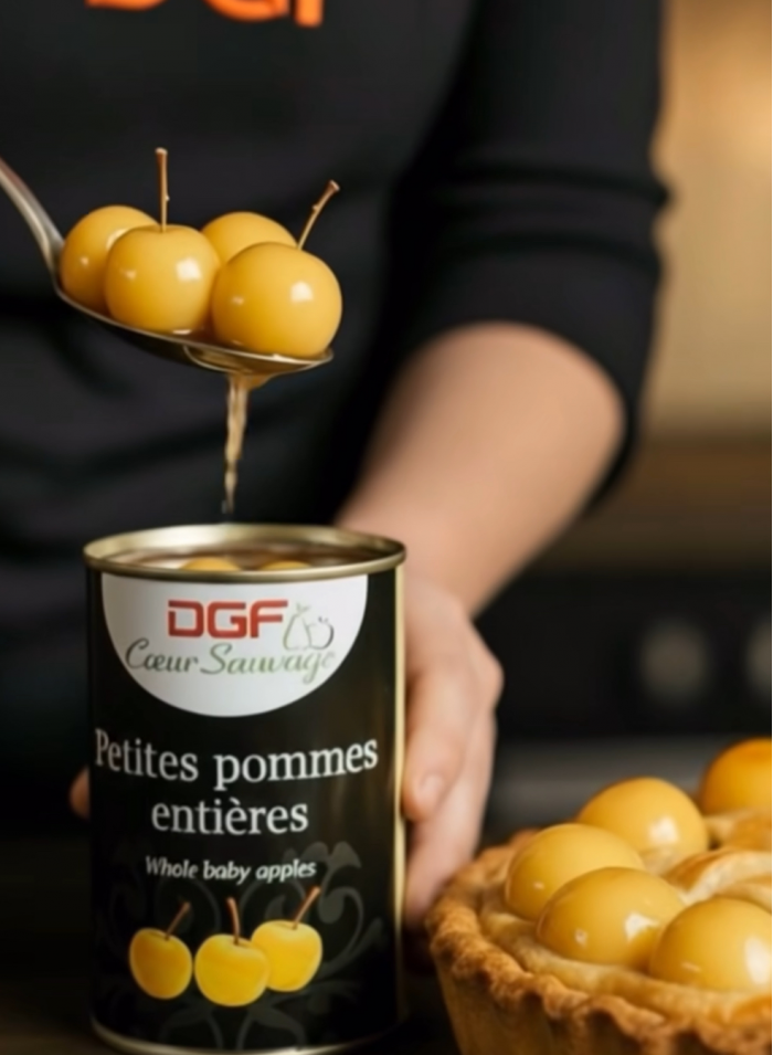 Міні яблучка в легкому сиропі DGF — це відмінний вибір для використання в кондитерських виробах. Ці цілісні маленькі яблучка мають ніжний жовто-зелений колір, середньою вагою 13-15 г. Ідеальні для декорування тортів, десертів на тарілці або як вишукана начинка для випічки.