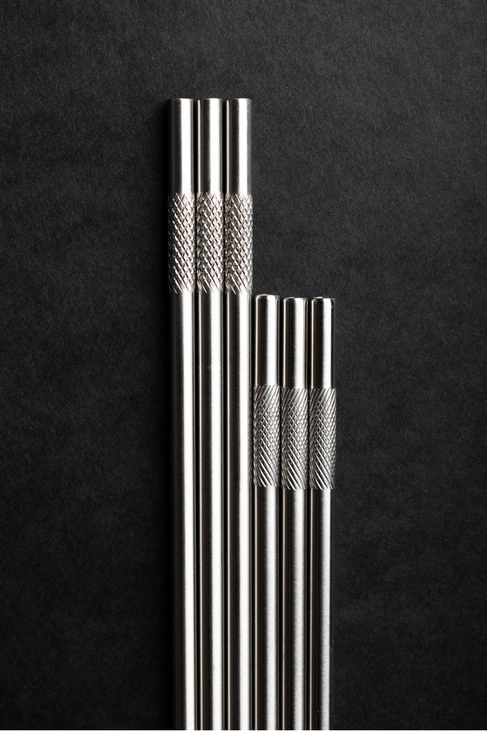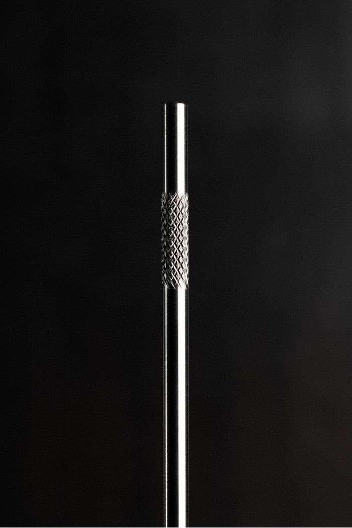 Изготовленная из высококачественной нержавеющей стали, она имеет приятный вес, удобный хват и надёжную рифлёную насечку, благодаря которой соломинка не выскальзывает из рук даже при активном шейке или смешивании.